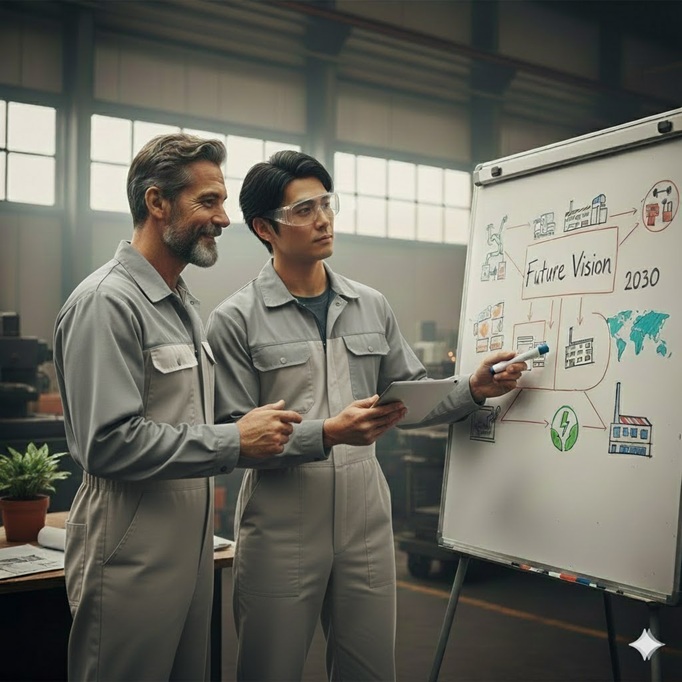 現場対応から解放された工場長が使うべき時間は、「将来の工場づくり」です。新しい受注の可能性を考える、設備投資の計画を立てる、採用と育成の方針を決める、取引先との関係を深める——こうした「今日の問題」ではなく「明日の会社」のための仕事が、工場長・経営者にしかできない本来の仕事です。
